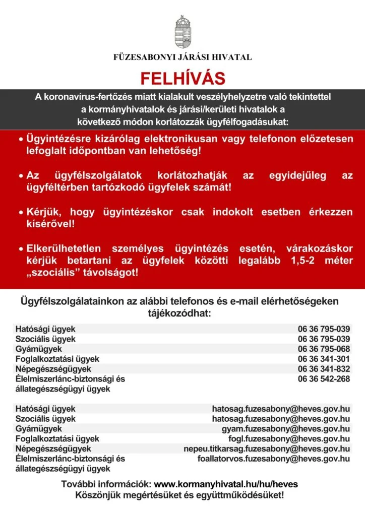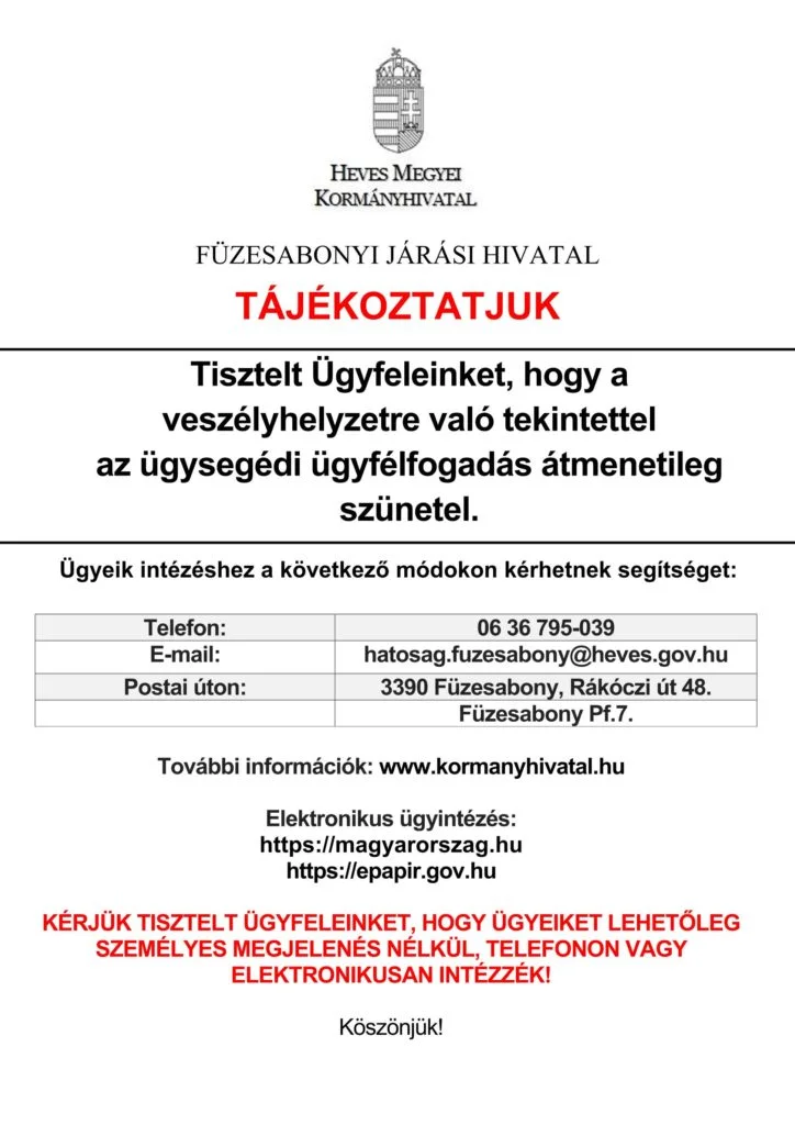 Heves Megyei Kormányhivatal Füzesabonyi Járási Hivatala felhívása