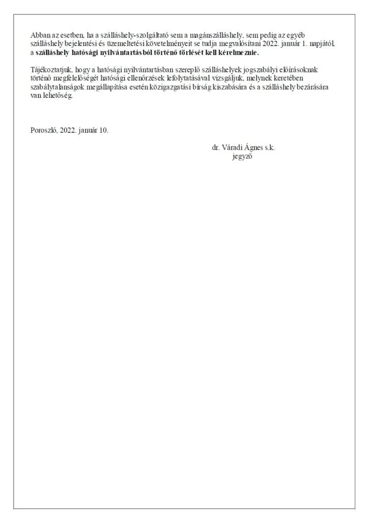 KÉRELEM egyéb szálláshely MAGÁNSZÁLLÁSHELYRE történő módosításához: https://poroszlo.hu/…/kerelem-atminositeshez…