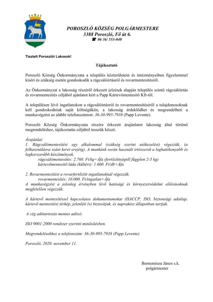 Kezdőlap / TÁJÉKOZTATÓ RÁGCSÁLÓIRTÁSSAL KAPCSOLATBAN