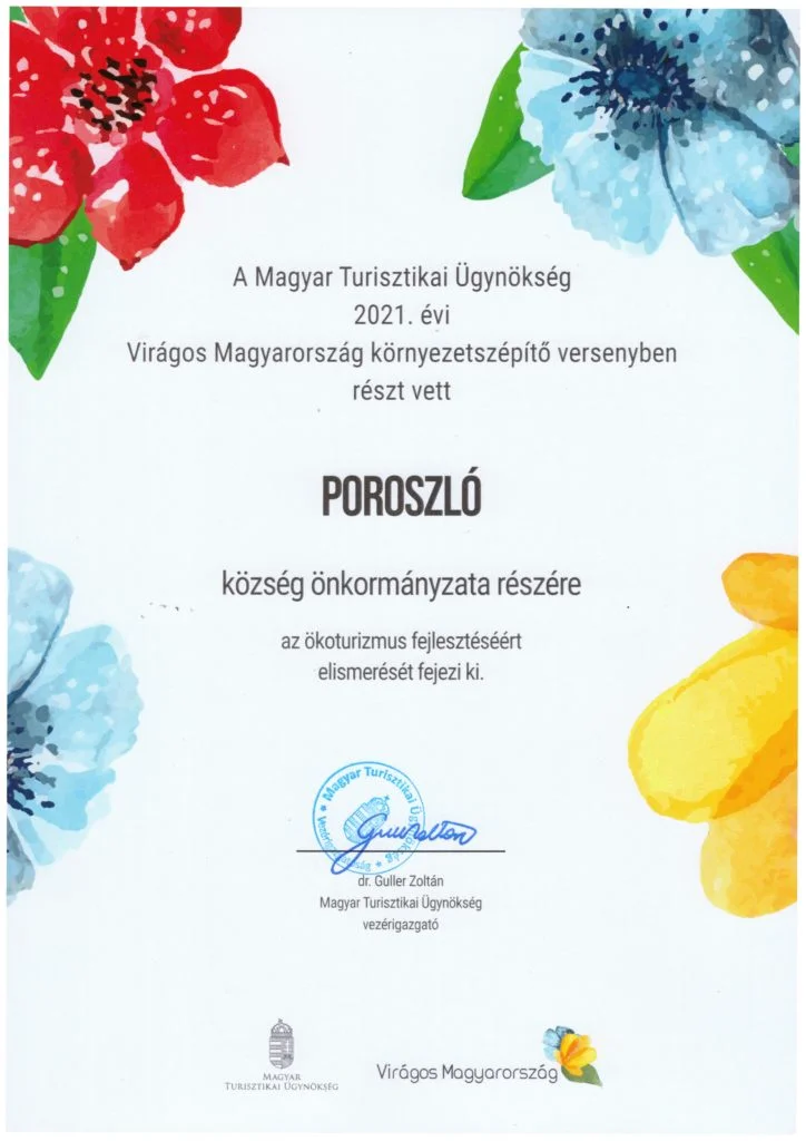 Poroszló is részt vett a 2021. évi Virágos Magyarország környezetszépítő versenyben
